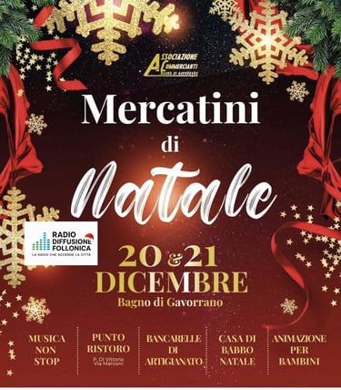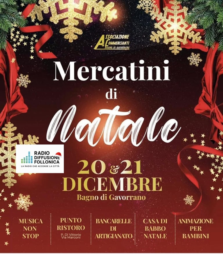 𝙇’𝙖𝙨𝙨𝙤𝙘𝙞𝙖𝙯𝙞𝙤𝙣𝙚 𝘾𝙤𝙢𝙢𝙚𝙧𝙘𝙞𝙖𝙣𝙩𝙞 𝙙𝙞 𝘽𝙖𝙜𝙣𝙤 𝙙𝙞 𝙂𝙖𝙫𝙤𝙧𝙧𝙖𝙣𝙤 , presenta i 𝙈𝙚𝙧𝙘𝙖𝙩𝙞𝙣𝙞 𝙙𝙞 𝙉𝙖𝙩𝙖𝙡𝙚 , nei giorni 20 e 21 Dicembre , nella centralissima Via Marconi .