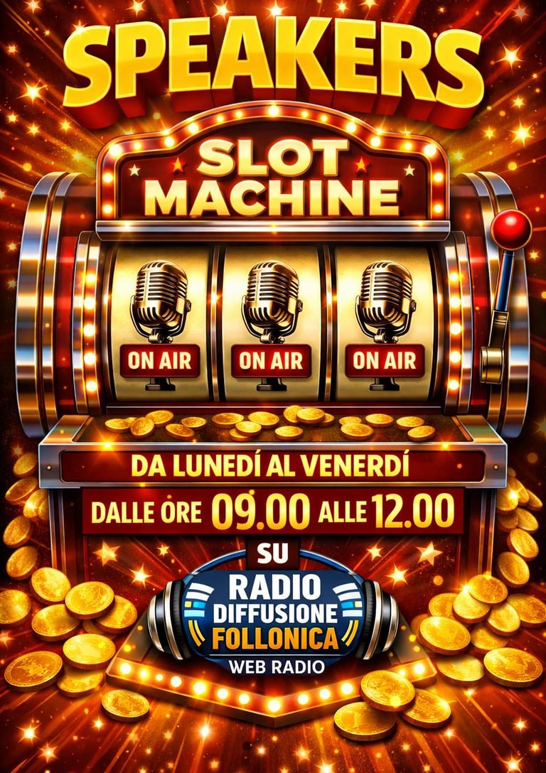 Dal Lunedì al venerdì dalle ore 09.00 alle 12.00, gli speakers di 𝐑𝐚𝐝𝐢𝐨 𝐃𝐢𝐟𝐟𝐮𝐬𝐢𝐨𝐧𝐞 𝐅𝐨𝐥𝐥𝐨𝐧𝐢𝐜𝐚, aziona la slot machine e arriveranno tante notizie curiose